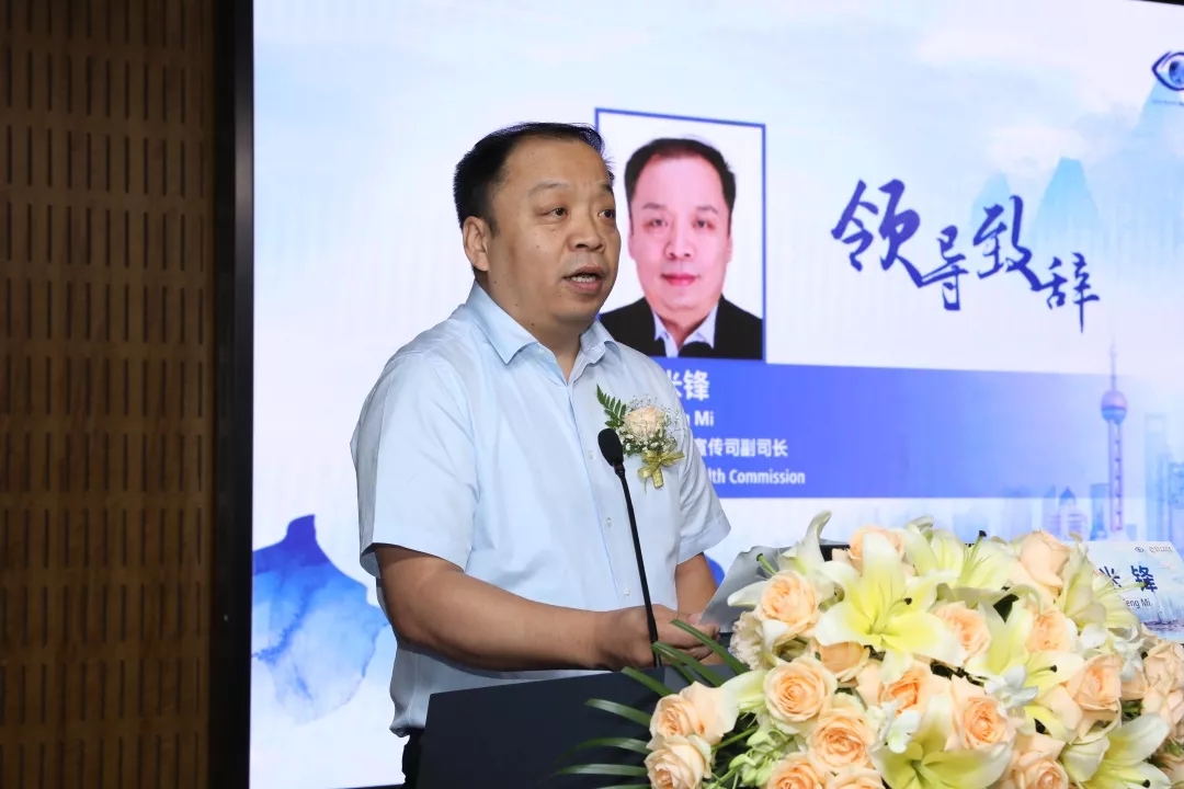 国家卫生健康委员会宣传司副司长米锋出席开幕式并致辞。亚太近视学会秘书长、香港希玛眼科集团主席林顺潮教授,以及复旦大学附属眼耳鼻喉科医院副院长周行涛教授共同担任大会主席并主持会议议程。