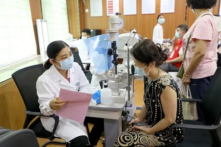 当天义诊活动中,深圳希玛林顺潮眼科医院杨玉珠医生在内的一众专业眼科医护人员,为现场近百名群众进行血糖检查、血压检查和眼健康筛查等健康服务,并由眼科医生看诊以及提供专业建议。