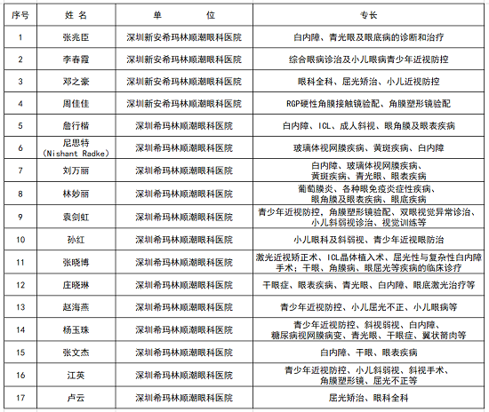 为聚集更多“最强大脑”为深圳科技创新出谋划策,2022年8月深圳市科技专家委员会办公室正式启动新一轮科技专家库专家征集。经深圳市健康行业产业发展促进会推荐,深圳市科技专家委员会严格评审,近日希玛眼科17人成功入选深圳科技专家库。