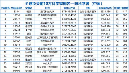 此外,2022年8月31日,全球学者库网站发布了"全球顶尖前10万科学家"最新排名,希玛眼科集团主席林顺潮教授以论文总评分715252.435030、论文篇均评分810.943000、H指数77、发表学科领域论文数882篇的优异成绩入选榜单,中国眼科排名第2、全球总排名16951.
