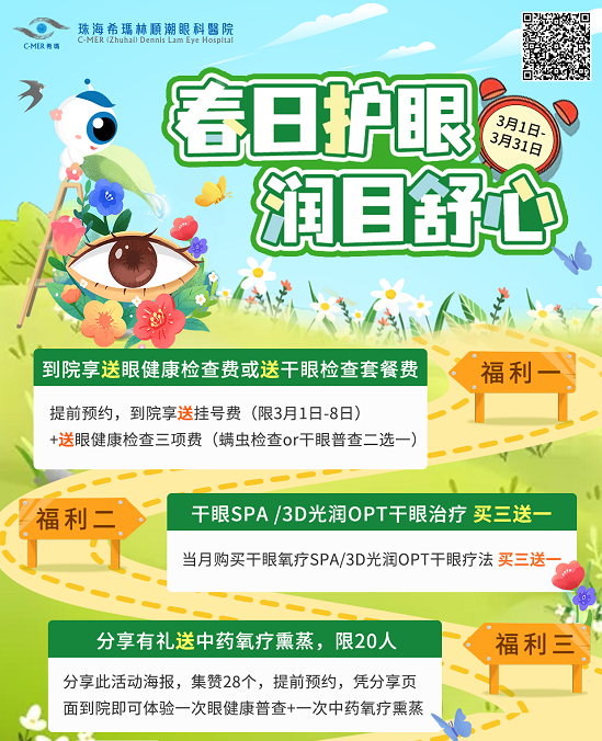 春日护眼,要润目也要舒心,治疗春季流行性眼病赠送螨虫检查/干眼普查、干眼SPA/OPT买三送一,领取福利,护眼真的很划算!
