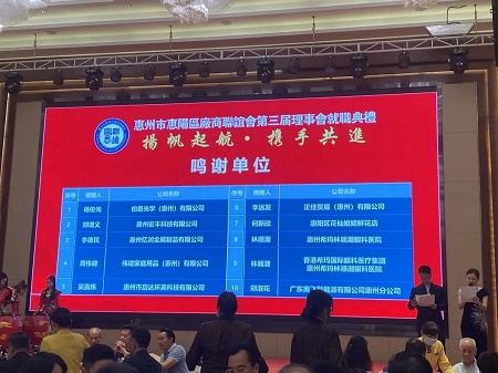5月9日,惠州市惠阳区厂商联谊会举行第三届理事会就职典礼,香港希玛眼科集团主席林顺潮教授当选理事会荣誉总监.