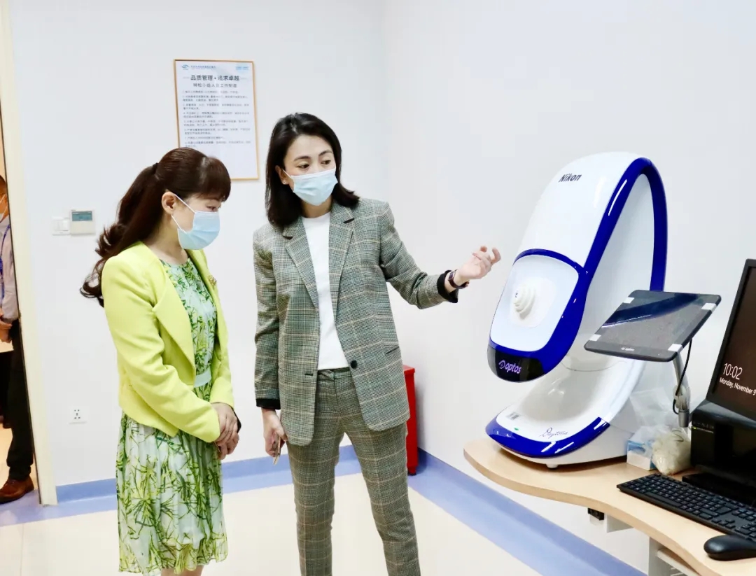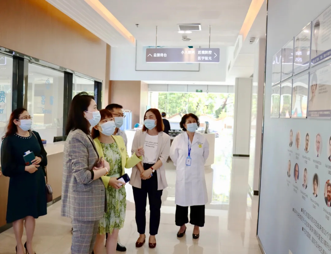 邹桦局长一行首先参观了医院包括小儿·青少年近视防控专科、综合门诊、屈光矫治专科、住院部以及医生诊室和检查室。