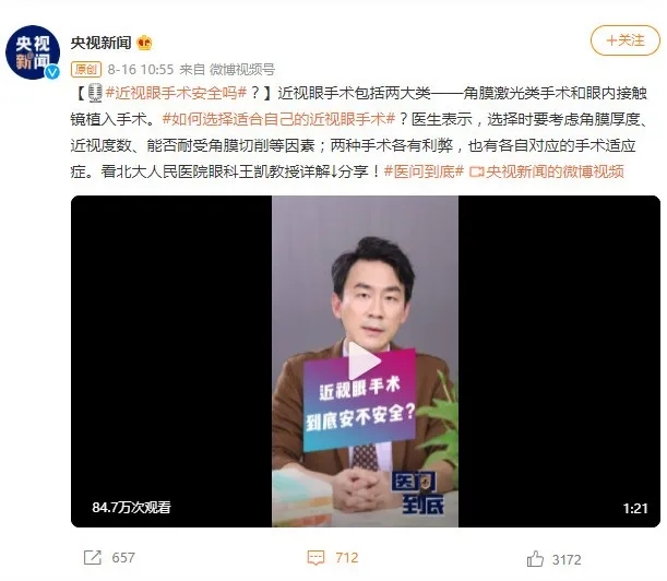 前段时间,央视新闻发起了#近视眼手术稳定吗#的话题讨论,曾引发全网的热议。