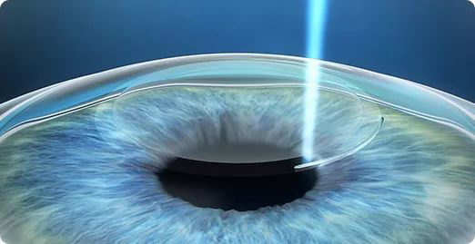 通过两次启动飞秒激光扫描制作微镜状的角膜组织膜片,并在角膜上方做一个2-4mm的浅层小切口,将飞秒激光制作的拟矫度数的小薄片角膜组织取出,从而达到改变角膜屈光力矫正视力的目的。