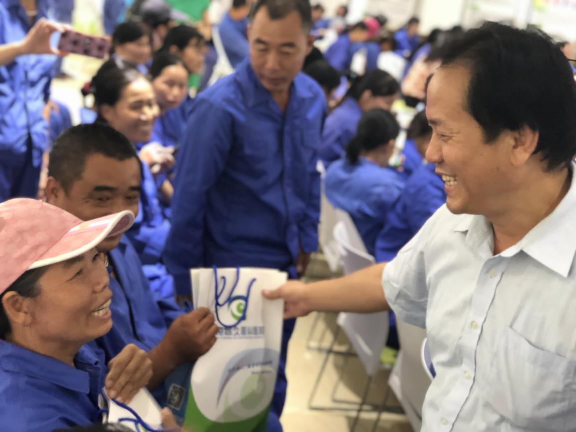 随着雷动的掌声响起,市领导上台进行了简单而激昂的致辞。致辞中,市领导表示了对辛勤付出的环卫工人们热切的关怀。正是因为他们挥洒的汗水,珠海市才如此得整洁干净。为了表达对“马路天使”的衷心感谢,在市领导的带头行动下,现场的义工们将珠海希玛林顺潮眼科医院早已精心准备好的臻品礼物逐个派发,收到礼品的“马路天使”们笑意满面。