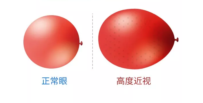 随着近视度数的发展,人眼球的直径即眼轴逐渐被拉长,眼球就像一个气球越吹越大。我们的眼底是很薄弱的,眼轴拉长随之就可能出现视网膜萎缩、组织变薄甚至破裂的情况。这也是为什么许多高度近视患者上了年纪后,眼底并发症也随之而来的原因。