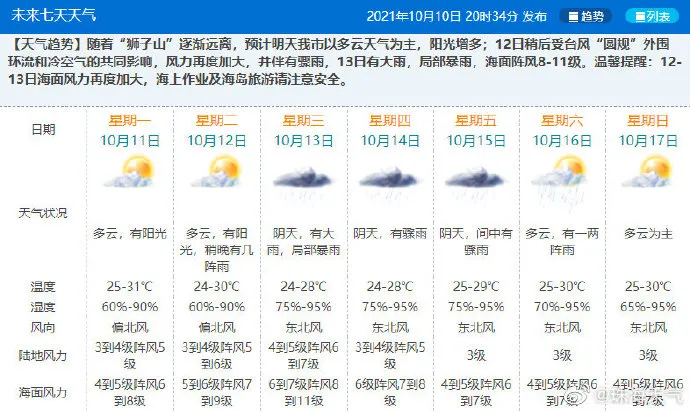 近因为台风“狮子山”的影响,广东多数地区都是“雨雨雨”的趋势。珠海也不例外,昨天还是雨下个不停的模式。珠海气象台在11日更新:白天我市雨转多云,有阳光。接下来几天多有阵雨,天气也不怎么好。