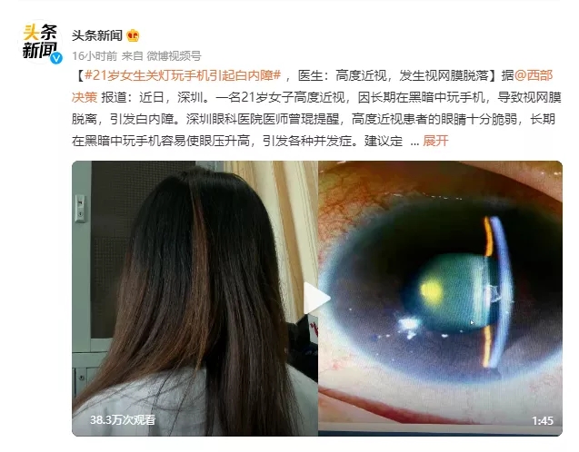 近日,一名21岁女子,就因长期在黑暗中玩手机,引发白内障进了医院!